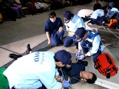 医療現場では迅速かつ正確な判断が求められます。的確な処置が行えるように繰り返し訓練します。