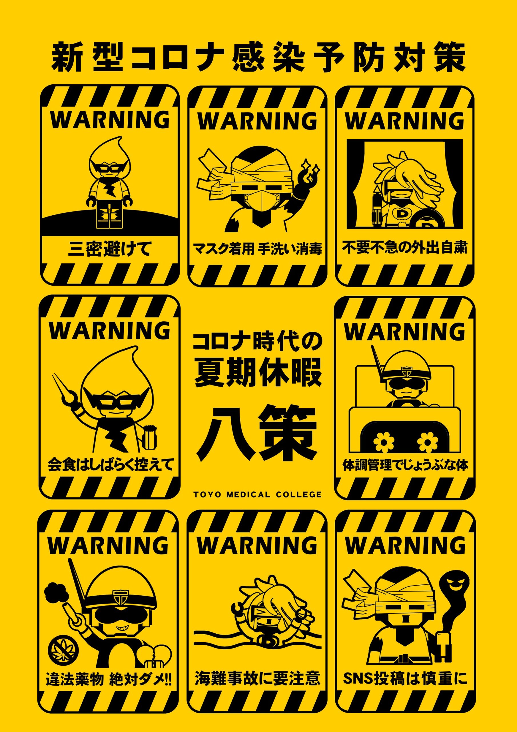 新型コロナウイルスの第5波が懸念されている中、いよいよ本校でも夏季休暇に入ります。長期休暇中は苦手分野の自主学習やアルバイトなど有意義な時間でもありますが、ちょっとした油断で危険なことに遭遇するリスクもあります。今年も昨年に引き続き、新型コロナウイルス感染予防対策も含め、この夏季休暇を安全に有意義に過ごしていただくための『コロナ時代の夏季休暇八策』を作成いたしました。既に学生の皆さんには配布していますが、保護者の皆さまもご一読の上、ご子息への注意喚起をよろしくお願いいたします。