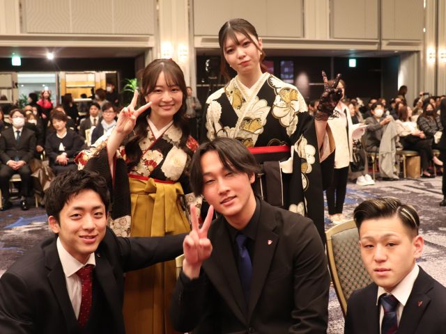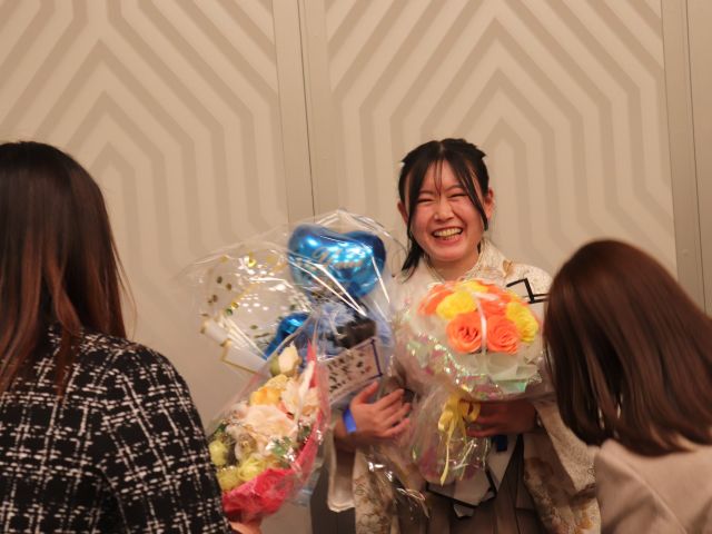 後輩たちも駆けつけ、先輩へ花束を渡す姿が見られました