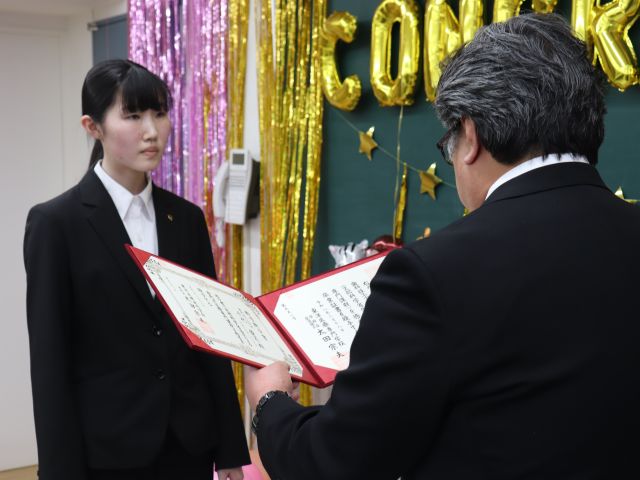 学校長から卒業生代表に証書が授与